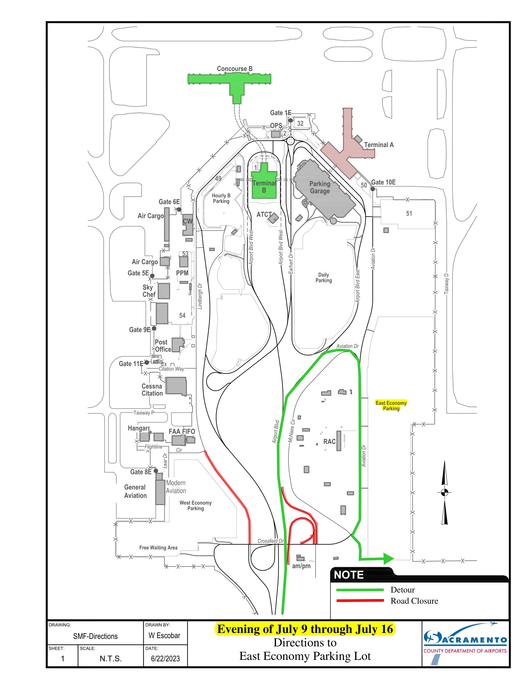 The primary area affected by this construction will be Crossfield Drive. As your convenience is our priority, we kindly request that you allocate ample time when arriving at or departing from SMF. Moreover, we urge you to exercise caution and remain alert while driving through the designated work zones. Please adhere to the speed limits and exercise patience during this construction period.